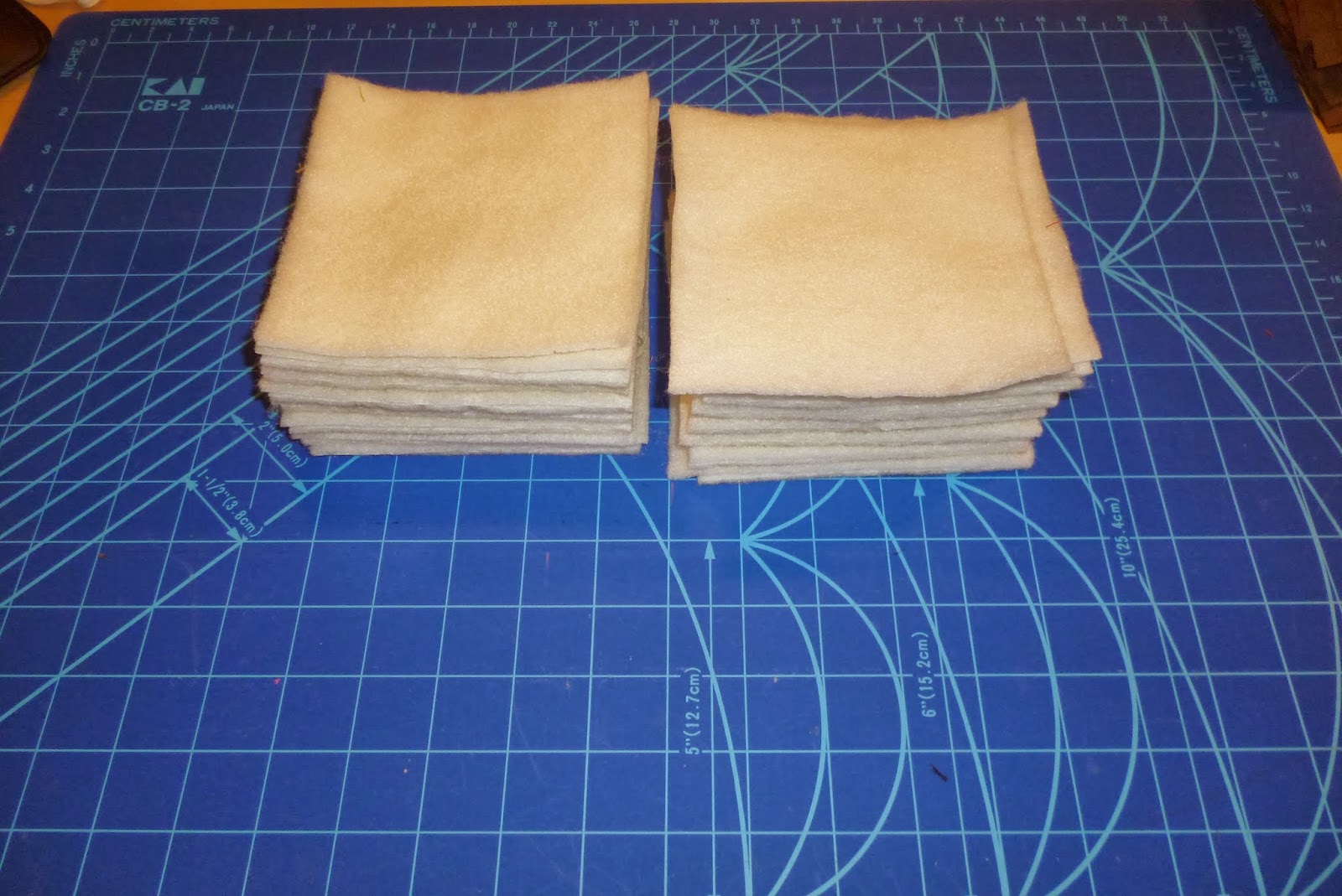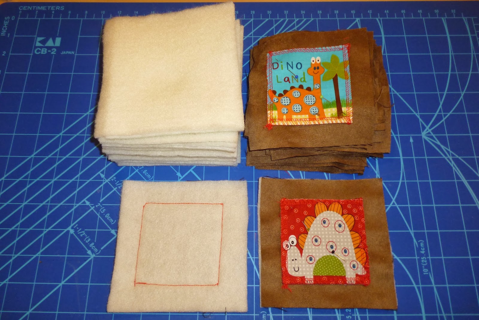 Ze základní látky nařežeme potřebný počet čtverců základny. Na každou hrací kartu potřebujeme 2 ks.