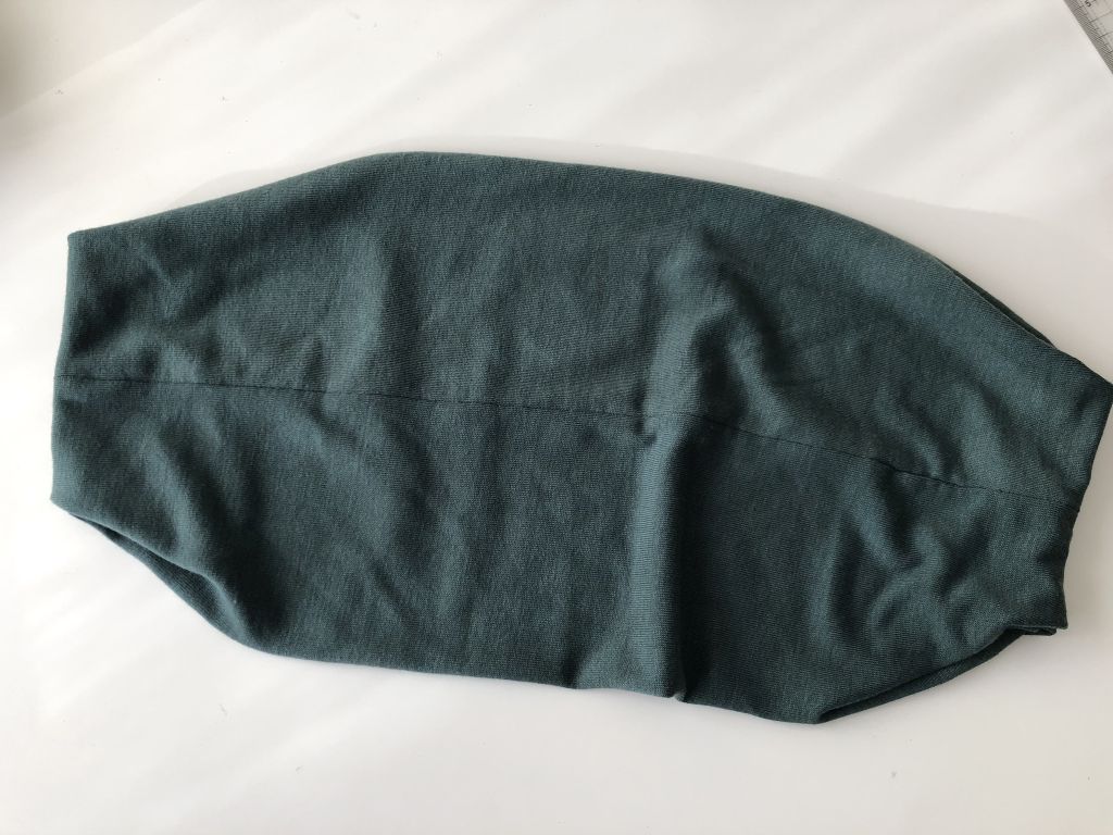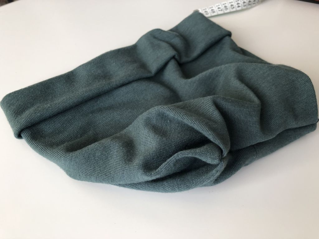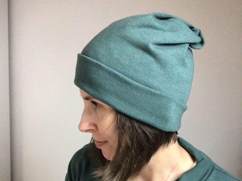 Látku na čepici – tenkou svetrovinu nebo jinou pleteninu (pružnou látku), sáhněte spíše po úpletu než po teplákovině. Z té se mi zdá čepice dost silná, protože látka je dvojitě a ještě uděláme na okraji ohnutím lem.