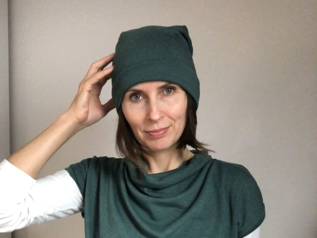 Po ušití zkrácené verze vesty styl (tady se můžete kouknout), mi zbyl kus tenké pleteniny. Velikostí tak maximálně na čepici. Střihů na čepice už máme v nabídce celkem dost – placených i těch zdarma, ale chtěla jsem něco jiného, jednoduchého, něco bez střihu!