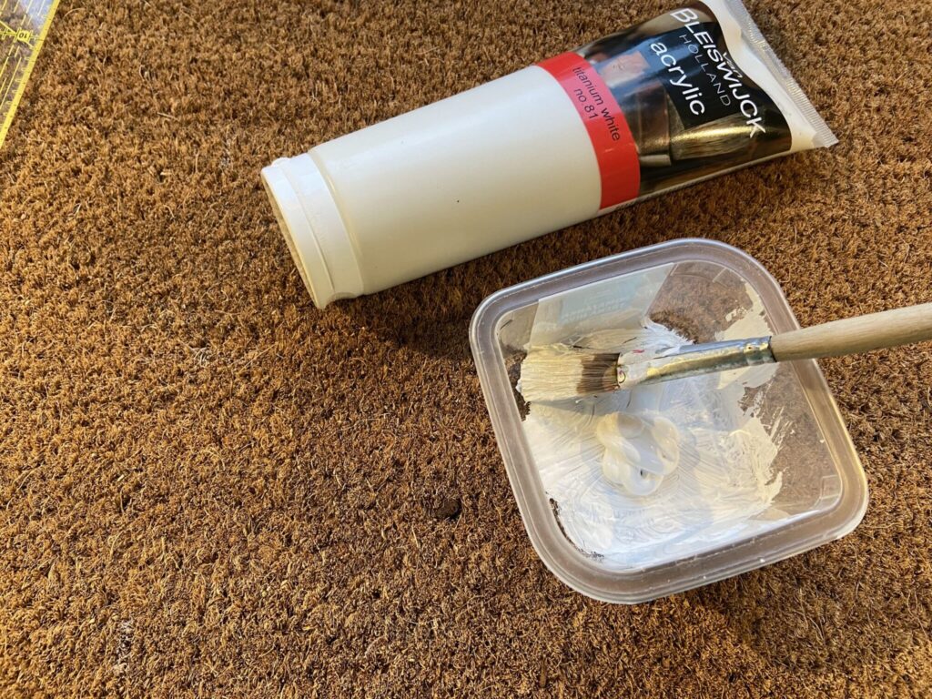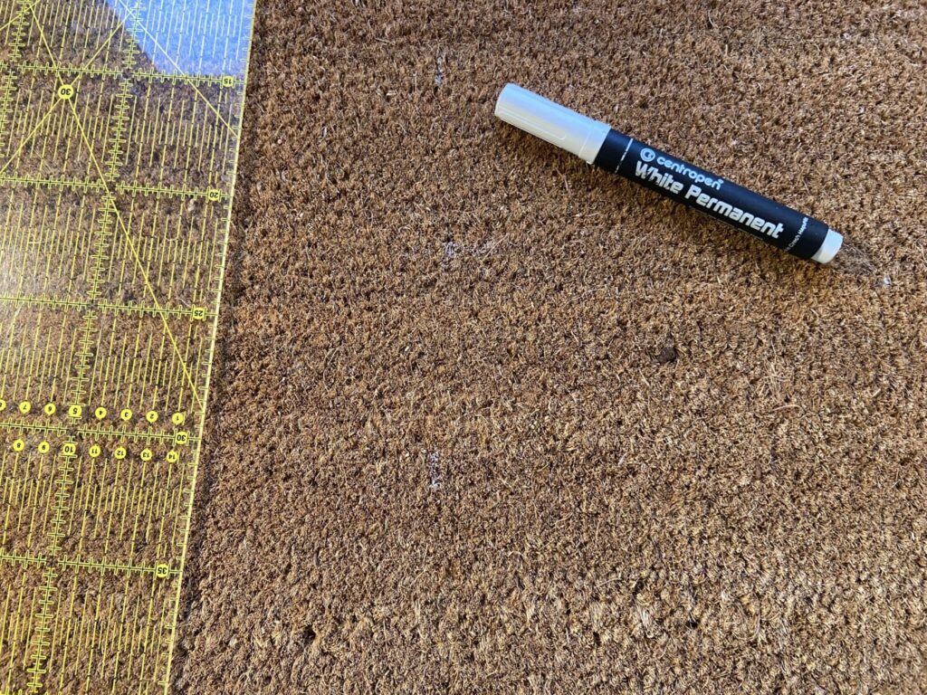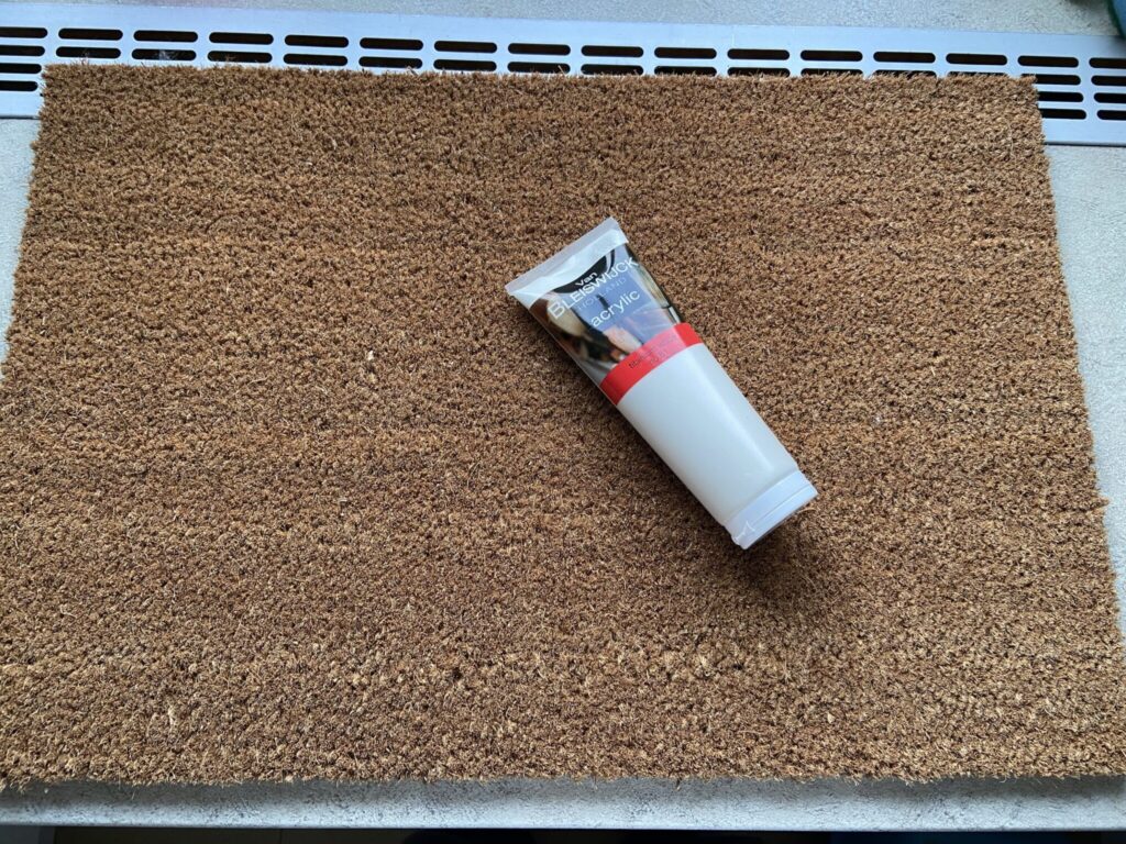 Moje rohožka o rozměru 60 x 40 je z Ikea a stála 99 Kč. Barvu jsem koupila v Action za 49 Kč.