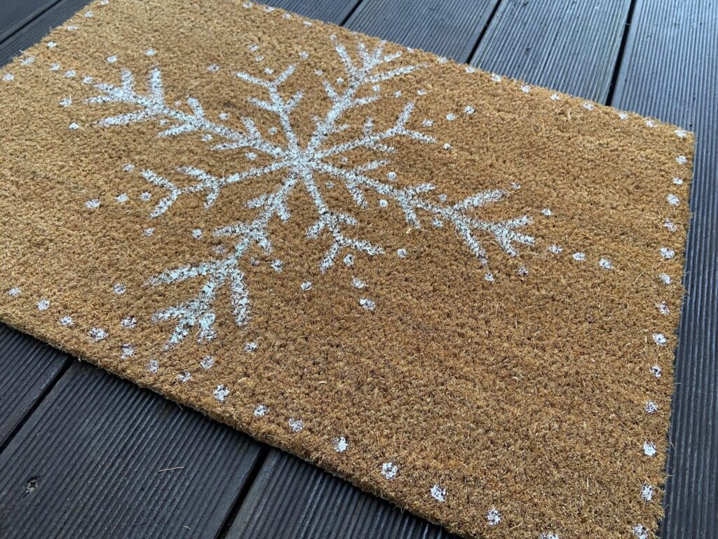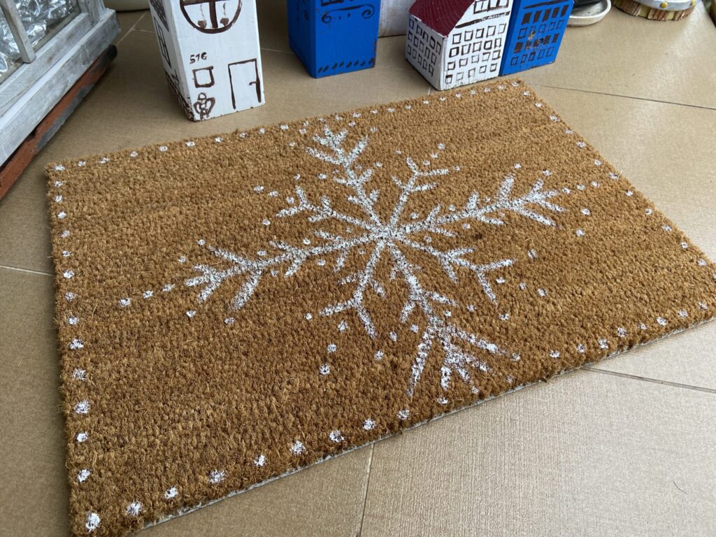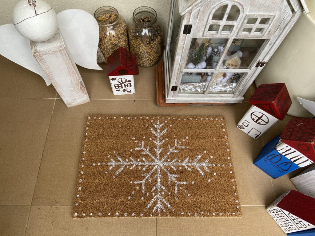 Ale dnešní článek přináší inspiraci na originální rohožku třeba s vánoční tématikou. Tím, že se zapojuji do adventního kalendáře, snažím se, aby i naše zádveří bylo vánočně laděné. Jeden rok jsem vyráběla anděly, druhý domečky, minulý rok jsem dostala skleněný domeček, ve kterém jsem vytvořila zasněženou vesničku. A letos jsem namalovala vánoční rohožku.