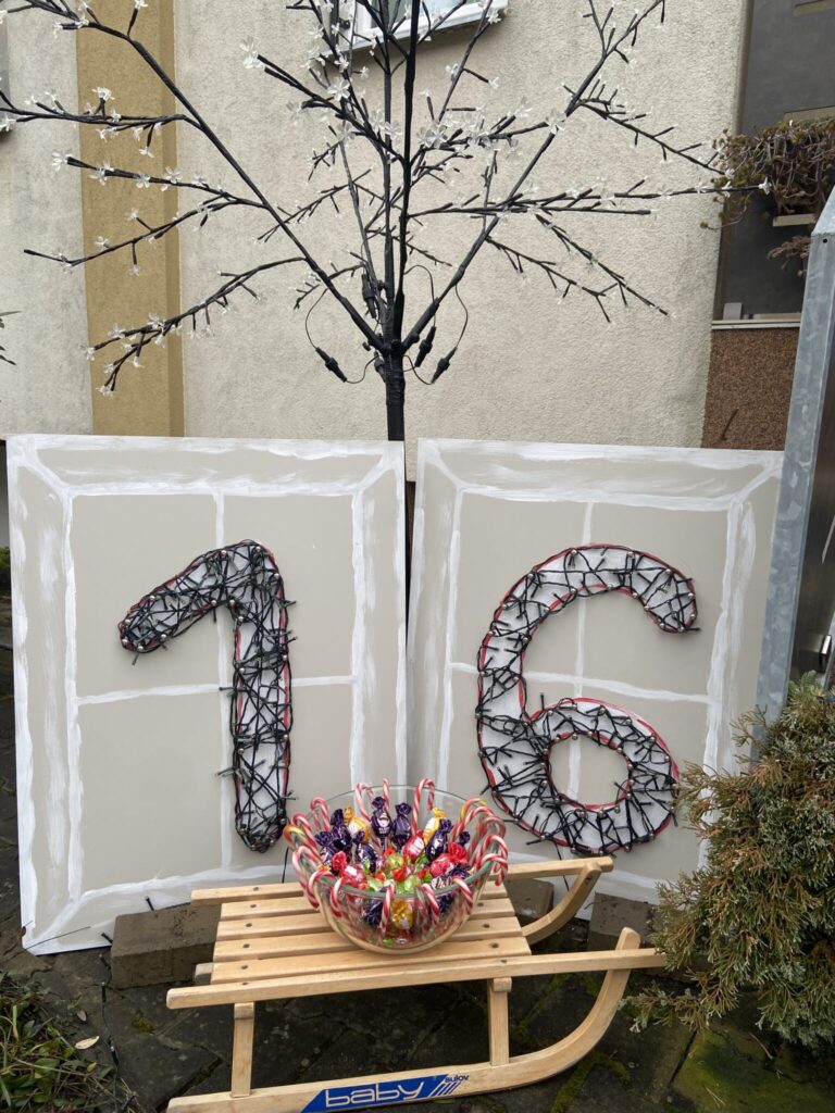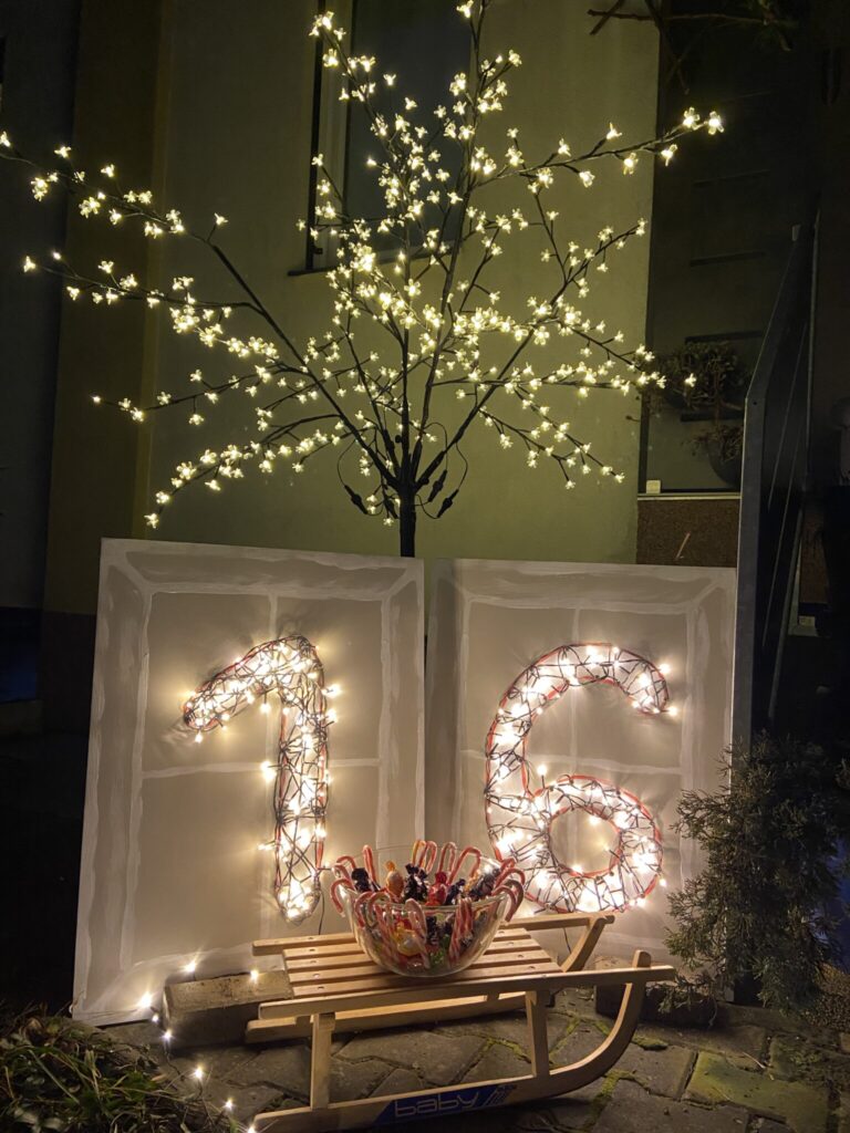 V letošním roce je naše číslo 16. Už několik let se u nás na vesnici připravuje okýnkový adventní kalendář. Není to nic složitého a už ani ojedinělého. Zaznamenala jsem tento kalendář na různých místech – městech či vesnicích. Kdo nezná, tak se může inspirovat. U různých domů jsou svítící jednotlivá čísla adventního kalendáře a také malá odměna pro dobrodruhy, kteří se po číslech vydávají. Je na vás, zda připravíte mapu čísel, napíšete nápovědy nebo jen ulice. Pak se každý podvečer rozsvítí nové číslo. U nás čísla svítí od svého dne až po Štědrý den. Odměna je u čísla pouze v den čísla. Jsou to skvělé cíle pro podvečerní procházku.