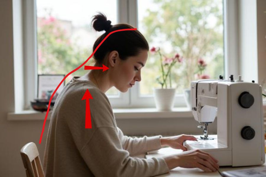 Možná to znáš, několik hodin u stroje, soustředění na detail, hlava skloněná nad látkou… a pak přijde bolest krku, hlavy, únava nebo dokonce migréna. Proto vznikl tento článek, jako jemné připomenutí, že i tvoření potřebuje péči o tělo.