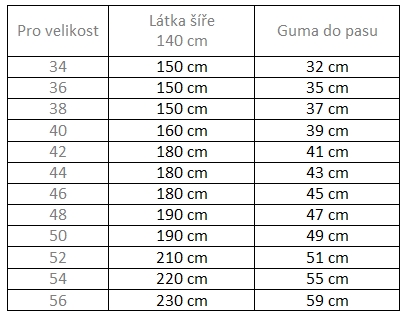 Pro jinou šíři látky je vhodné určit si spotřebu látky individuálně vyskládáním střihu na vaši šíři. V některých případech lze výrazně ušetřit.