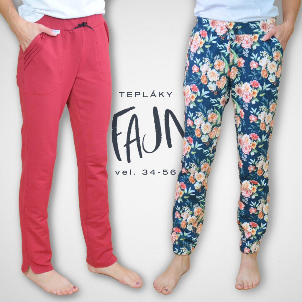 Ušijeme si pohodlné stylové tepláky FAJN. Tepláky jsou užšího přiléhavého střihu. Kapsy jsou zdobené sámky a pouze jednou vrstvou podšité, aby nepřidávaly na objemu. Můžete si však ušít tepláky s kapsami bez sámků nebo i bez kapes. Nohavice lze zakončit na několik způsobů. Základní zakončení je rozparkem do obloučku. Dále můžete oblouček nahradit rovným rozparkem nebo do třetice rozparek úplně vynechat a všít do spodního okraje gumu. Tepláky lze ušít z různých druhů a vzorů teplákoviny a vytvořit tak kousky na všelijaké příležitosti.
