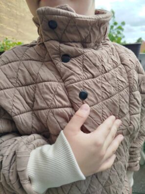 - Náročnost je zde uvedena pro mírně pokročilé, protože budeme šít z teplákoviny a ušití límce vyžaduje trochu trpělivosti, ale zvládne to i začátečník, který se bude řídit podrobným postupem.