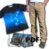Výhodný balíček střihů pro muže. Můžete jim ušít kalhoty, tričko a boxerky. Oproti nákupu samostatných střihů výrazně ušetříte. Výhodný balíček je dostupný ve variantě PDF (doručeno elektronicky e-mailem) nebo papírové (doručeno poštou).